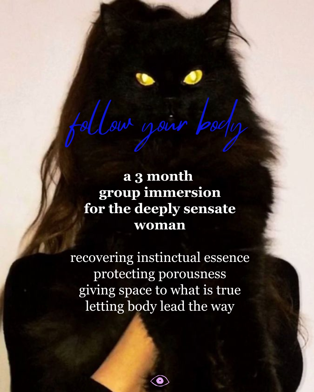 Follow Your Body is an intimate group chrysalis for the Woman who knows that the Body is Her Way.